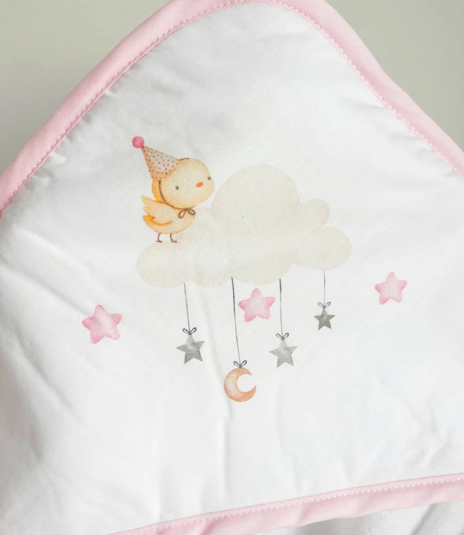 Capa baño o toalla con capucha, con la que podrás secar y abrigar a tu bebé después del baño. Está confeccionada con suave tejido de algodón.