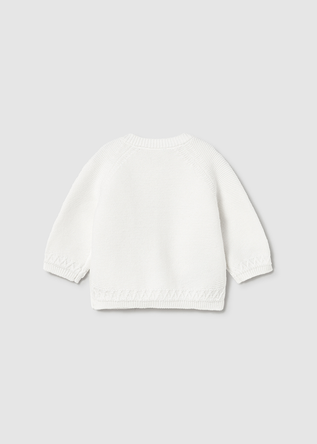 Rebeca de cuello redondo para bebé. Cierre con botones y bolsillos simulados.
