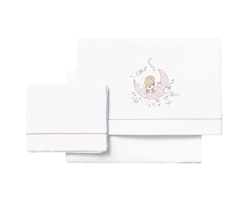 Juego de sábanas de franela para cuna. Compuesto por sábana, bajera y funda de almohada.