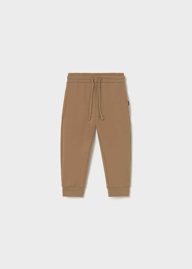 Pantalón largo para niño de felpa básico. Cintura ajustable. Puños elásticos en los bajos del pantalón.