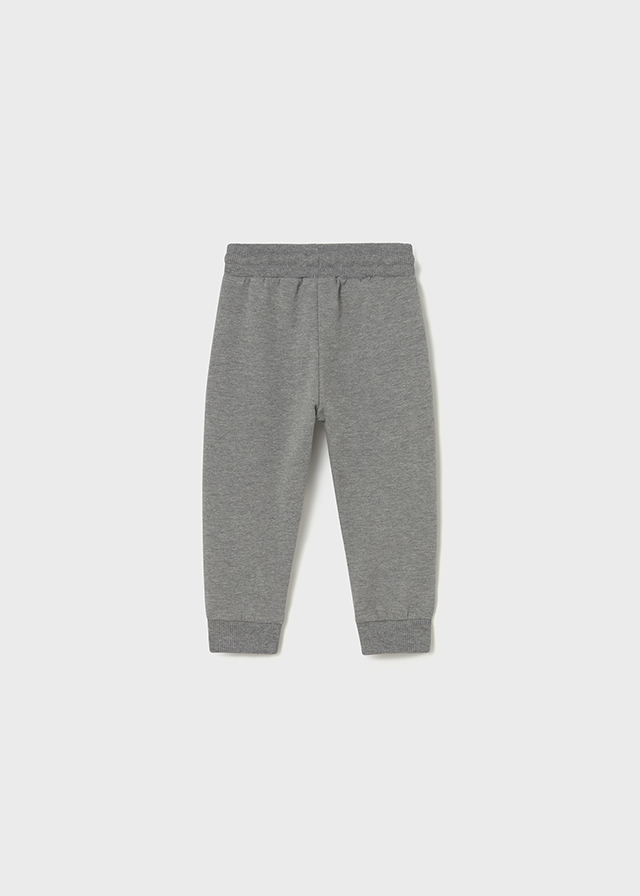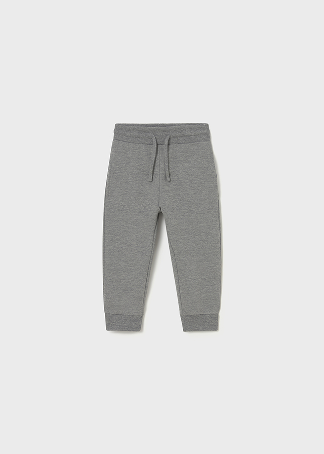 Pantalón largo para niño de felpa básico. Cintura ajustable. Puños elásticos en los bajos del pantalón.